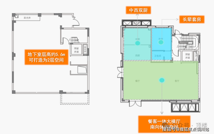 ▌地下室挑高达到了约5.6m,完全可以打造2层空间,享受别墅独有的“空间复利”;