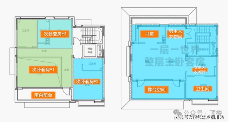 2楼空间全套房设计,3个套房满足2孩、3孩家庭以及四世同堂的居住需求;
