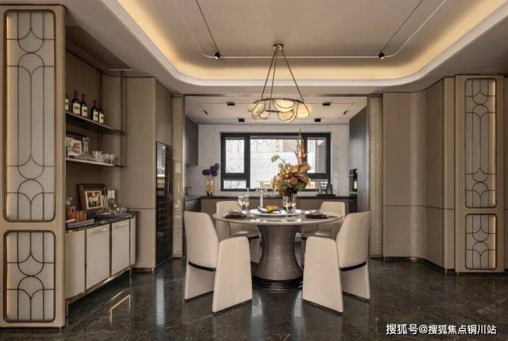 一侧灵活配置的活动餐边柜,兼顾了实用与美观。这里的亮点在于对材质组合的极致追,不同肌理与光泽度的材料被精密地嵌合在一起,构成一曲刚柔并济的材质交响诗。