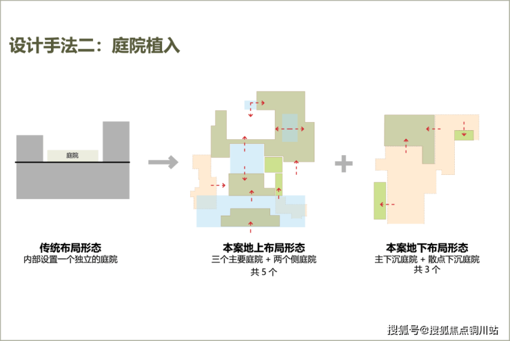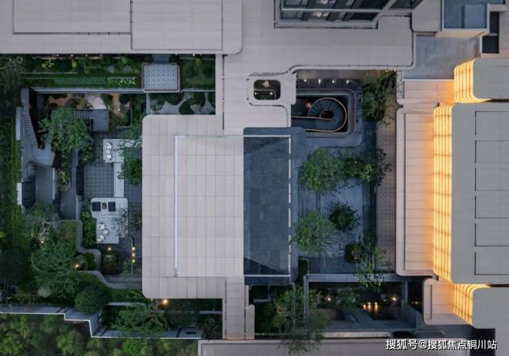 丽香庭借鉴古典入园空间序列,打造多重院落、层层递进的归家礼序。地块整体抬高约3.7米,最大高差超过7.5米的下沉庭院,以微妙的视觉层次划分功能空间,通过散点布局、小空间组织,消解空间中心;自然山水垂直铺展,形成多维“立体庭院”。游廊曲折、台地错落,行走其间,循着自由灵动的立体游园路径,忘园入画,化境归心。