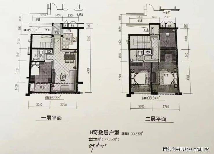 此外,还有奇数层89㎡的跃层户型,有44套。大体上,户型设计与偶数层的一样,可拓展面积为55.28㎡,实际可使用面积也能达到144㎡。