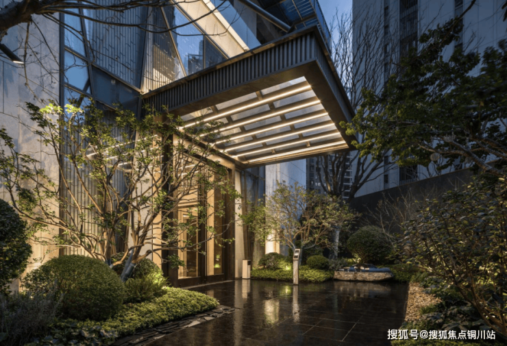 围合式布局筑就递进式归家礼序,社区主入口以酒店式迎宾格局徐徐展开。特选造型松姿迎宾而立,引居者从喧嚣步入宁静;后场花园承载着社交活力与疗愈独处“动见繁盛之境,静生清雅之心”的双重空间体验。在景墙围合之下,叠山理水,以写意笔法勾勒自然轮廓;层林掩映,于秩序中生长盎然意趣。