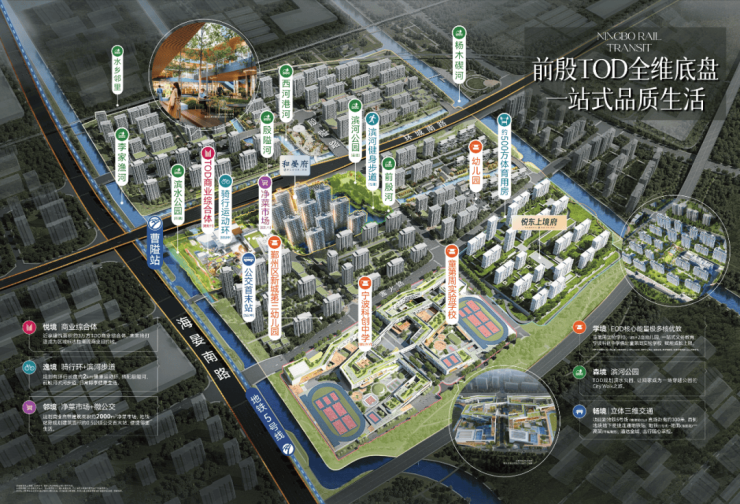 作为宁波首个TOD导向的大规模综合开发区域,前殷区块是宁波轨道置业TOD实践的标杆项目。依托品牌深厚经验,以完善交通体系为基础,逐步落成各项配套设施,拓展区域功能空间与基础设施,构建资源高度聚合、充满活力的新质生活圈。