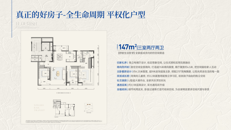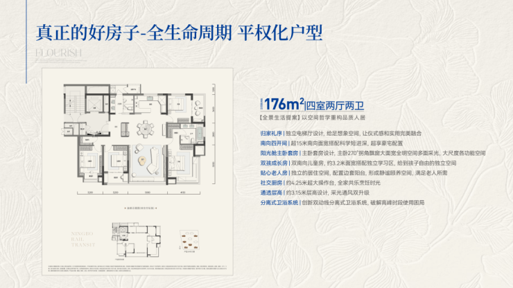 和晏府创新打造建筑面积约147-202㎡迭代改善大宅,赋予人居的不仅是一个物理空间,更是一个温暖、公平、充满尊重的生活载体,一个让家中每位成员都能感受到同等关爱、自在成长与身心安顿的理想之家。