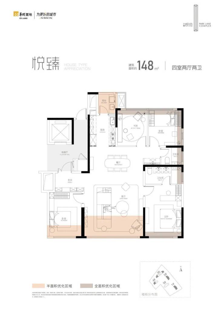 中寰悦府只有2个户型,建面约148㎡和172㎡的纯粹改善四房产品,整体定位是一个纯粹改善的高端住区。
