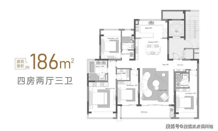 • 珑月(约164m²):四室两厅三卫,方正格局,南向双套房,全明厨房;