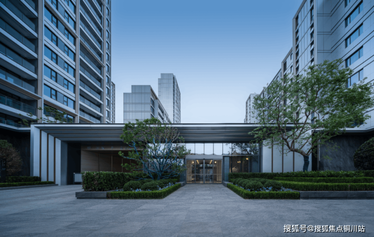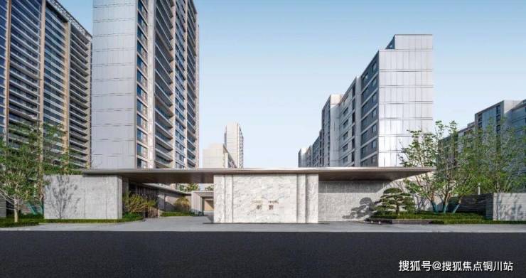 项目西门有约55米宽的壮阔大门,搭配约38米宽的景观廊架,以及奢石景墙、树景和水景,营造出酒店式归家仪式感。