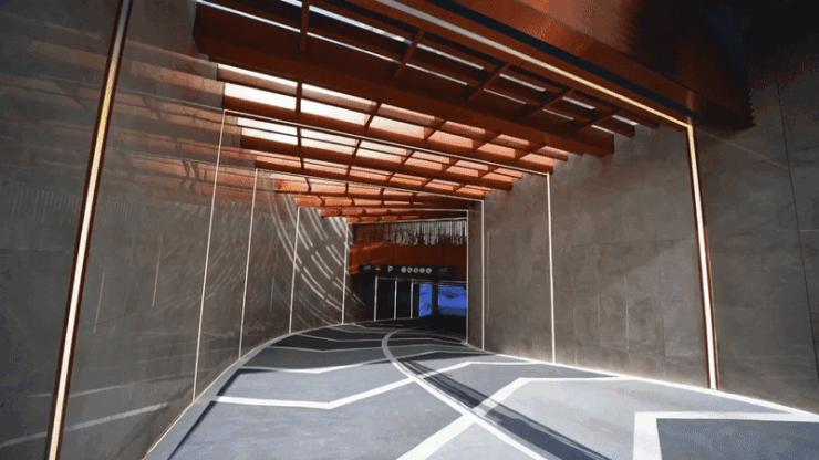 精装地下车库,整体看上简洁大气。入口格栅设计增加自然采光,干净整洁的金刚砂地坪漆,精致醒目的楼栋标识,在细节之处,又提升尊崇感。