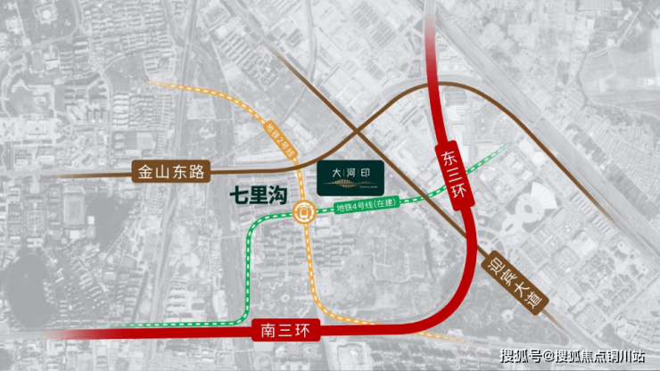 门口就是地铁2号线七里沟站和地铁4号线(在建),直接连接新老城区。另外,东三环、南三环高架、迎宾大道快速路、金山东路四条城市主干道环绕,出行相当方便。