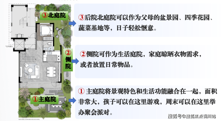 270°环景庭院,全苏州罕见!一层U型“围合式”院落布局,整体宅与景的比例超过了1:1的奢侈配置,将每户的私有景观更大化设计,绿意360°包围,3大庭院,承载了家庭的无数个美好生活场景: