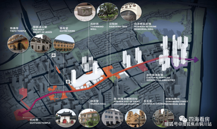 汉阳古城文化轴,从归元寺至汉阳江滩,串联打造六大景观节点。在武汉内环构建一条古今交融的文化商业步行街区,搭建文化+生态城市文旅T台。