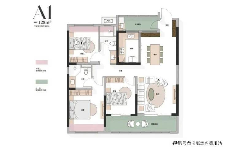 其中128㎡不仅做到大三房居住体验,还在入口玄关处多赠送一个生活阳台,大大提高了使用空间,还做到了真正的南北通透!