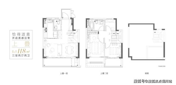 建面约118㎡上叠户型,以“开启质感日常”为核心,实现三室两厅两卫的功能布局。独立入户设计,礼遇日常归家欢愉。南向宽景阳台让空间明媚开朗,引绿意盎然入室。LDK一体化公区构成开阔社交场域,动区与静区上下分离,实现动静有序的起居格局,重建理想生活秩序。
