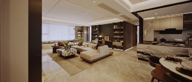 酒店式落客大堂挑高达7.5米恢弘之势,开启渐进式的礼序归家情境风范之间,让停留成为至高无上的仪式。