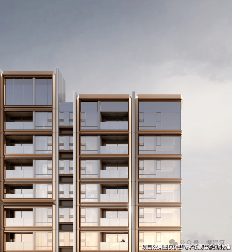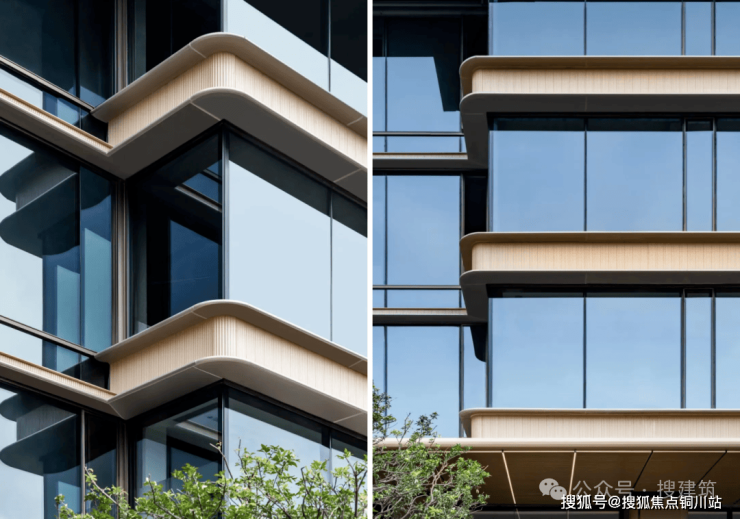 建筑立面的设计采用造价高、质感十足的“铜色金属板+浅色折叠陶板”,精心雕琢出协调统一的建筑形态,细致勾勒出建筑主体的挺拔姿态和稳重典雅的。