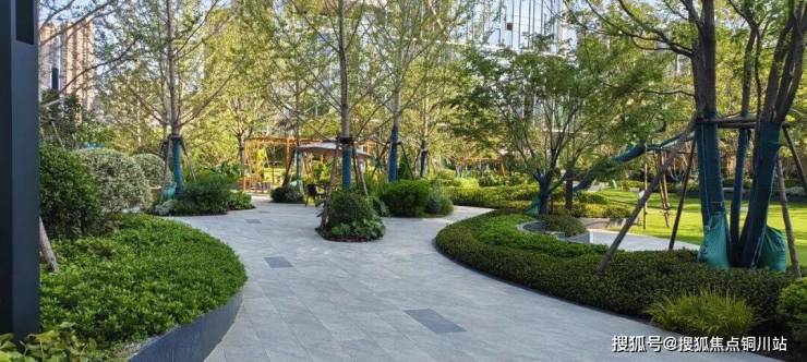 核心大草坪如柔软绿毯向四周延展,连接健身区、多功能区、商业区等,以及隐于花荫下的亲子秋千。樱花深处,休憩看台静候,春时坐看飞花,秋末独对红云。