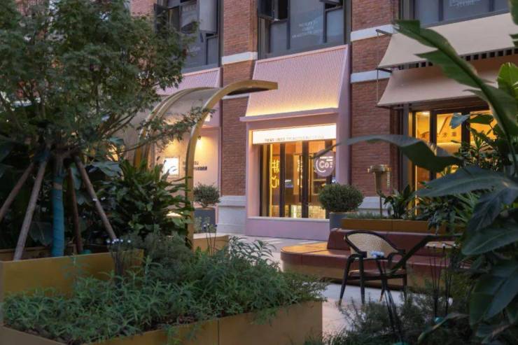 如果要用一种芬芳为我们的街区注释的话那一定是咖啡的香气,因此室内也将销售大厅打造成咖啡厅的场景,我们希望景观是室内咖啡馆的延续,所以 在沿建筑区域利用围合的户外家具,遮阳伞和特色屏风还有植物营造出时光咖啡厅,那是在阳光穿过树荫洒下的斑驳中惬意的午后时光,这里是时光的艺术走廊,也是城市的户外咖啡厅,花的香气和咖啡的香气融在一起让整个场域散发出迷人的浪漫气息。