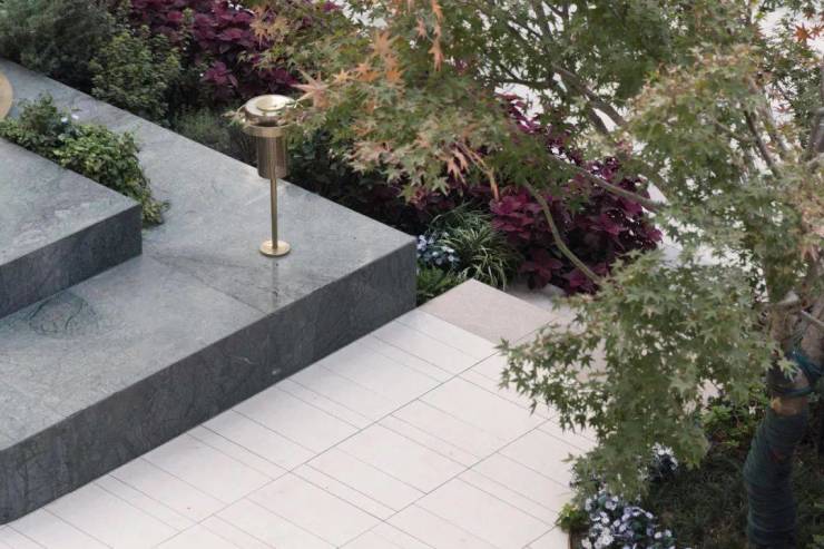 入则宁静,绿 洲花园以花园里的公馆为主题,植物是花园的主角。 素有“祥瑞”之称的榉树作为行道树威仪迎宾,单元入户两侧的紫薇寓意繁华富贵,丰富多彩的地被植物更是为整个花园铺上一层繁花似锦的基底,花园中心阳光草坪边缘层叠的水景之上是一棵造型飘逸的羽毛枫,成为整个花园的视觉焦点。