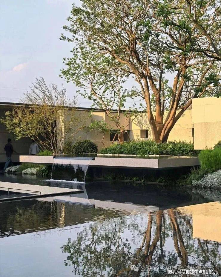 七株精挑细选的红果冬青,生长在层叠的悬浮水院之上。水底的幻彩蓝奢石倒映着天光云影,将杭州的立体山水浓缩进整片园林之中。