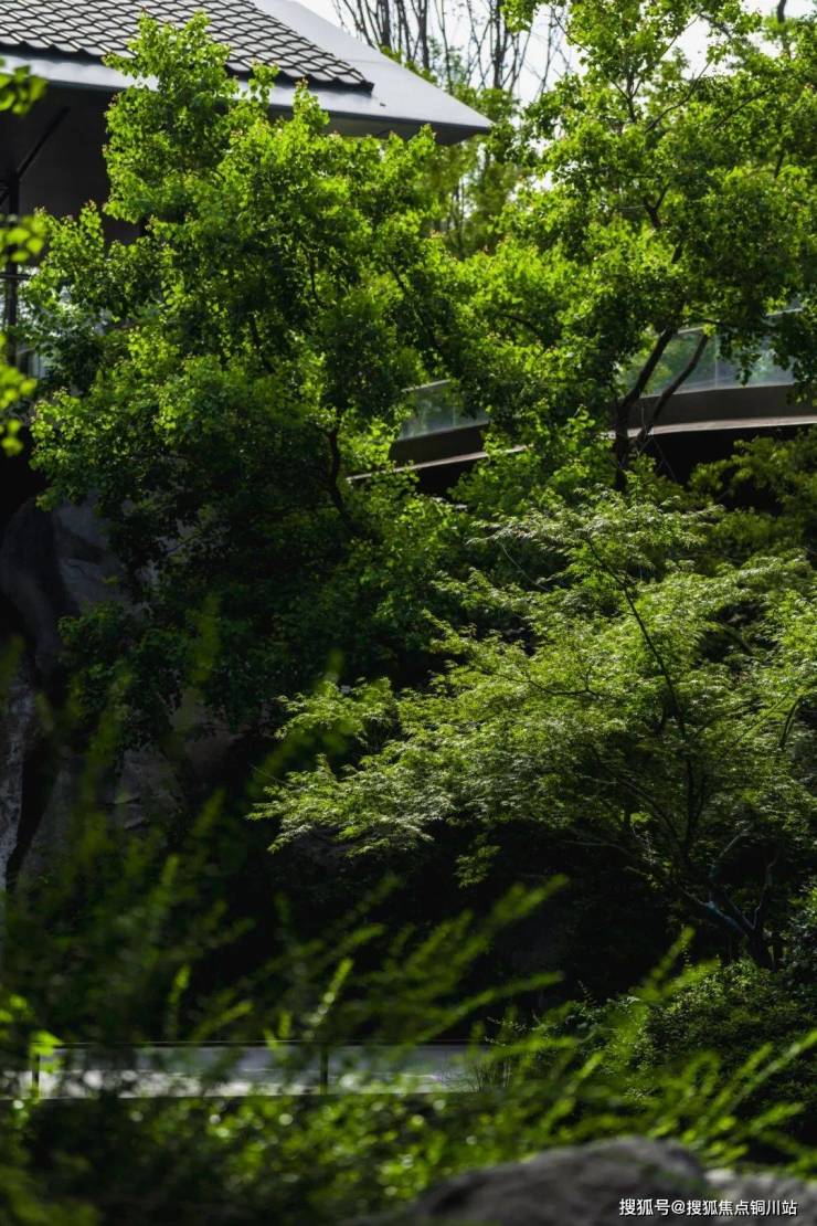 下沉式庭院【三池一山】流水潺潺,草木生机勃勃,青石小路不失为午后散步的好去处。