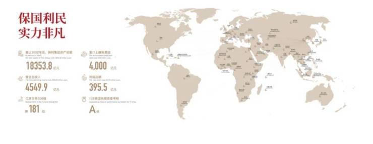 中国保利集团,成立于1983年,是经国务院、中央军委批准组建,由国务院国资委直接管理的大型中央企业。41年来,保利集团已形成以国际贸易、房地产开发、轻工领域研发和工程服务、工艺原材料及产品经营服务、文化艺术经营、民用爆炸物品产销及服务、信息与通讯技术、丝绸相关产业、金融业务为主业的发展格局,业务遍布国内100余个城市及全球近100个国家