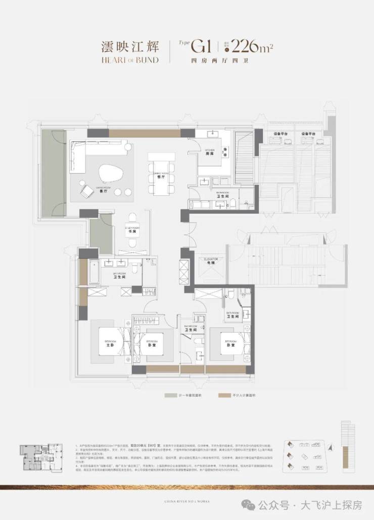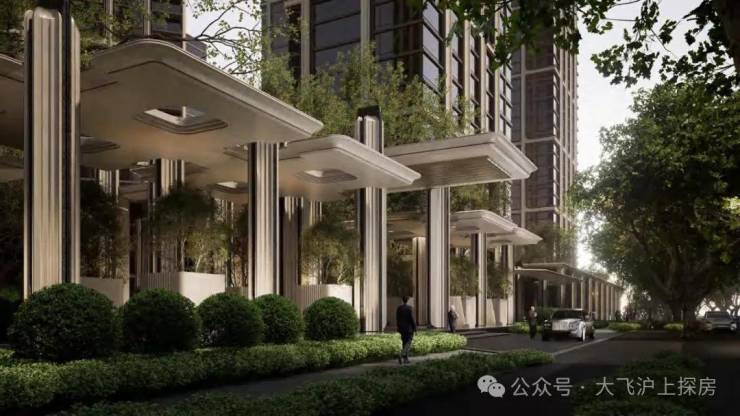 美学立面,中段以浪白与夕阳金游艇舱勾勒出270°江景画框,下段石材柱廊则向上生长出ART-DECO经典线条。