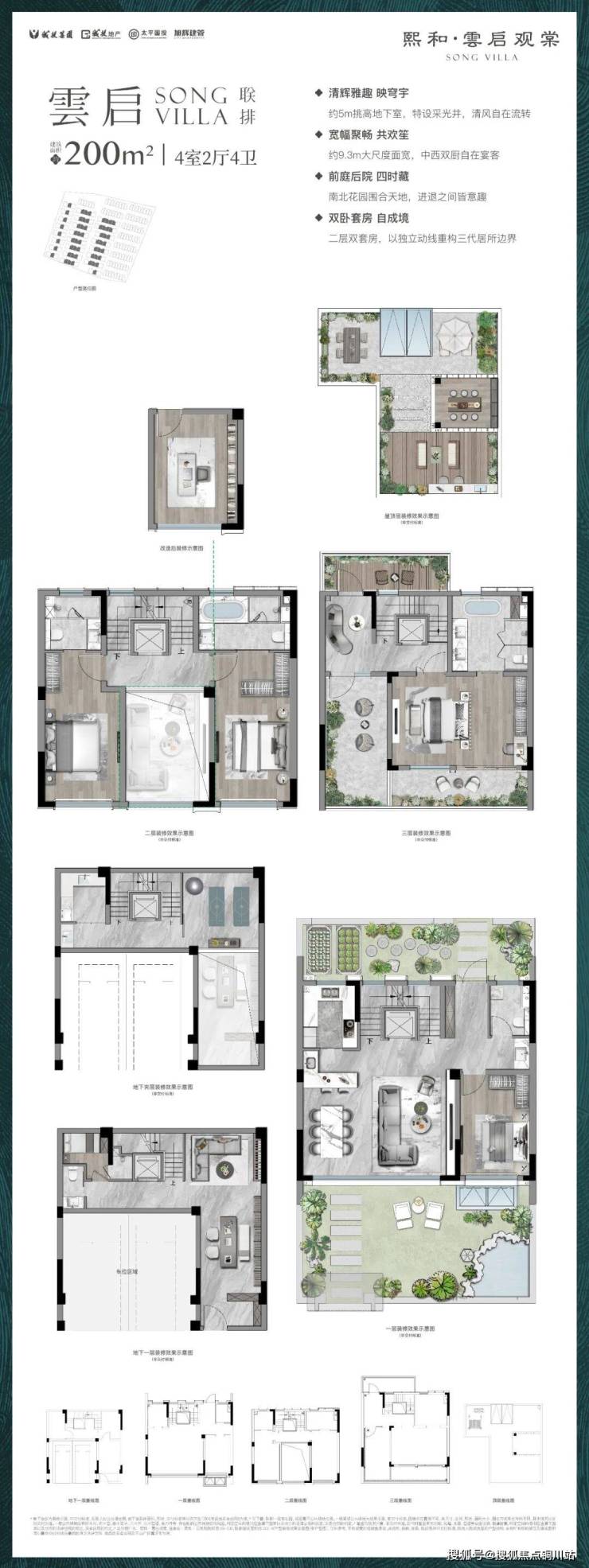 叠墅为4层“真叠拼”,上下叠均配地下室,并赠送大面积挑空:
