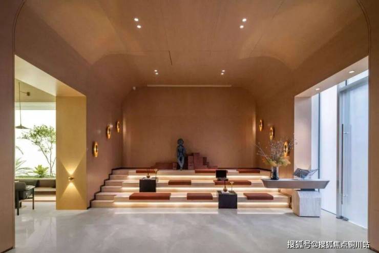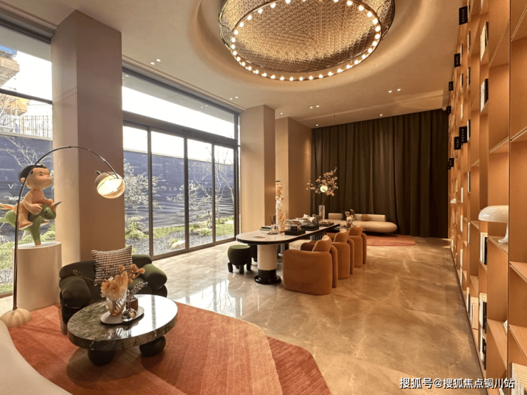 以“湖滨度假生活”为核心,示范区精心打造的公共区域及会所室内设计,灵感源于“水之形态,马之精神”,巧妙融合湖滨文化与现代艺术元素,营造出高端奢华度假酒店的轻松与惬意。选用烟粉色大理石材、流畅的弧形线条、温暖的木质墙面,辅以华美的大理石装饰,共同描绘出水的灵动与韵律。巧妙融入“马之精神”,通过白马雕塑与马主题的油画作品等元素,巧妙呼应,贯穿整个空间。这不仅为项目打造了独特的记忆标识,更与白马湖的意境相得益彰,共同营造出一种宁静与和谐的氛围。