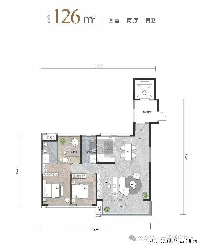 建面约126平边户,居住体验完爆传统建面约150平户型。
