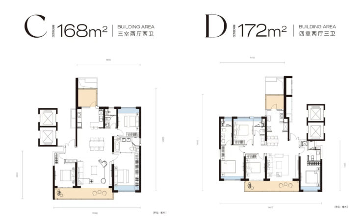 两个户型都做到了南北双阳台,将空间感和功能性做到了极致;独立贯通电梯厅空间,私享独立玄关,不仅能加强收纳和私密性,还能作为室内外的过渡场所和缓冲空间,有效优化入户动线。