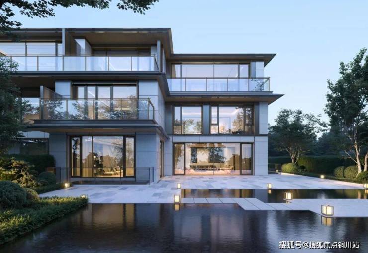 洋房/平层水波形态的曲面屏,270度的无界环幕视野等创新形式让人耳目一新,以大面积通透玻璃幕墙勾勒建筑轮廓,消融室内外界限,