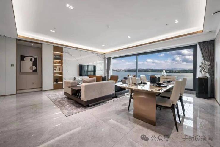 绿城的外立面从来不会让人失望!采用新一代 “无边框曲面屏” 设计,大面积巨幕玻璃窗搭配铝板线条,窗地比超高,看着就像 “玻璃盒子” 一样通透。低层建筑还用了暗金色铝板,既有质感又不浮夸,远远望去就是南湖边的一道风景线,住在这里太有面子啦~