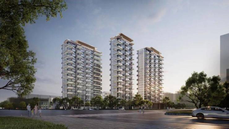 建筑通体主要为香槟色,立面以两层为单元进行统一设计,呈现出整体主次分明,挺拔向上的建筑形象。翼板尺度纤细,线条顺滑,出檐深远,质感细腻,立面充满未来感的同时又不失家庭应有的温和元素。