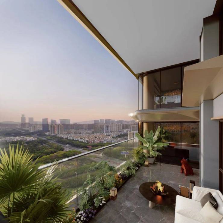 大进深的室外阳台是生活场景的特殊载体,通高的视野带来人生别样体验,比普通传统的开放式阳台承载更多的期待。