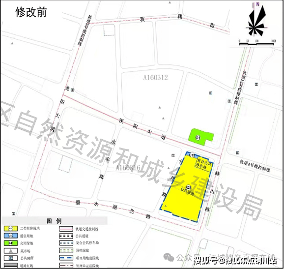 0.11公顷通信用地变更为居住用地复合通信用地(邮政支局);与居住用地复合利用的公共停车场调整至汉阳大道以北,与规划控制的公园绿地复合利用;取消街坊内东西向公共通道。