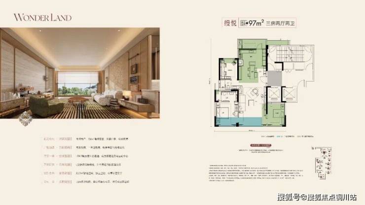 建面约97㎡三房两厅两卫:实得约113㎡,功能三房,LDBK一体化设计