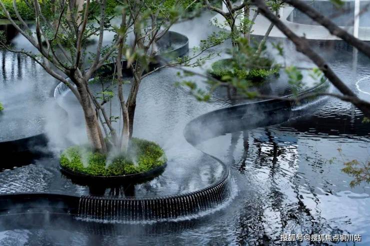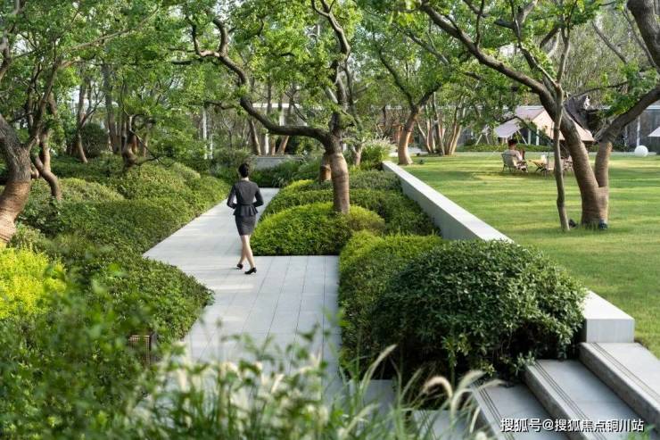 轻薄的风雨连廊串联起酒店式大门与未来的会所,池水在阳光下晶莹剔透,泛起的秀色,映出一片明净。水景跌落的轻语,树梢轻微的摇曳,更像轻风送来的怡然安宁。