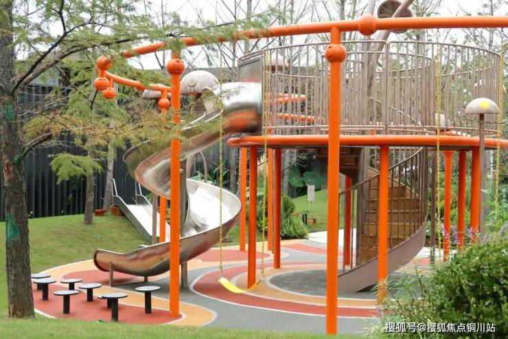 小径与植物相互穿插,随着两侧的地形的缓缓起伏变化,营造富有野趣的林间乐园。郁郁葱葱的绿植,蜿蜒曲折的道路,未知的体验激发着孩童对自然的探索。