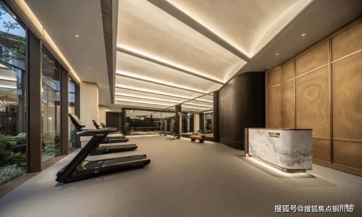配备各种器材的健身房也面朝庭院,在这里跑步时,眼前是庭院绿意,耳畔是自然之声,让运动不再是负担,而是享受。