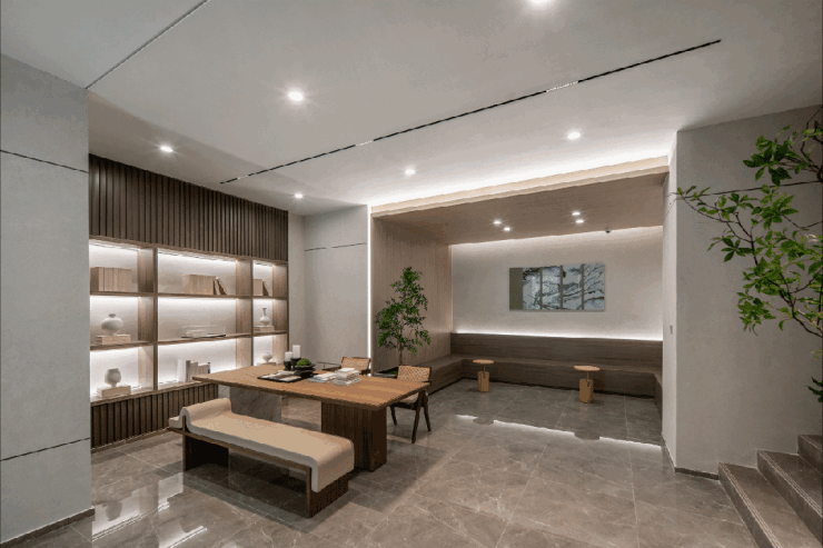 在微风轻拂的沿江退台上,在长廊一侧的坡屋顶建筑之下,在精奢雅致的园林空间里,车马皆慢,重获内心的平和。