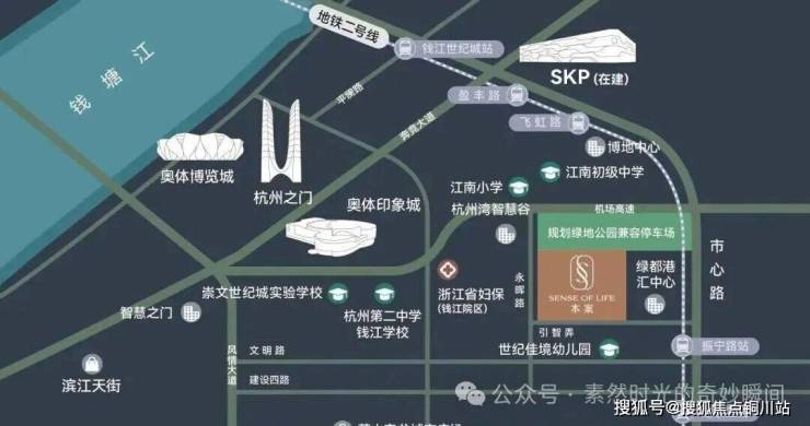 距地铁2号线振宁路站B口直线距离仅约150米,2站杭州SKP,4站钱江新城核心;3站萧山万象汇。距城市主干道市心北路直线距离仅约160米,贯穿世纪城,快速通达杭州全城。