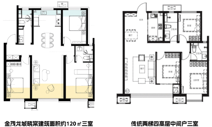 二者比较起来,你会明显感觉到龙城晓棠户型布局的优势: