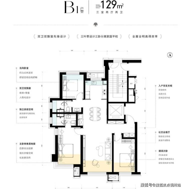 首开时将推出前三款户型,包括建筑面积约120㎡、129㎡三室及建筑面积约143㎡「3+1」室。
