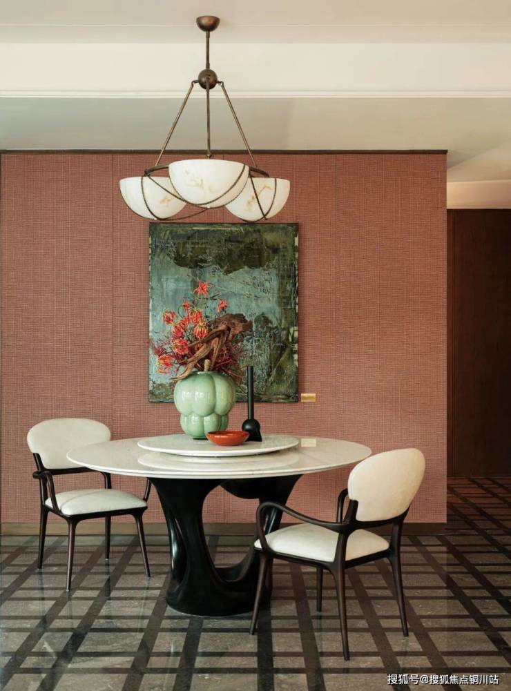 造型独特的吊灯由透光云石精心构件而成,与极具雕塑感的餐桌相互映衬,共同营造出充满仪式感的艺术餐厅,每一处细节都彰显品味与格调,让人沉醉其中。