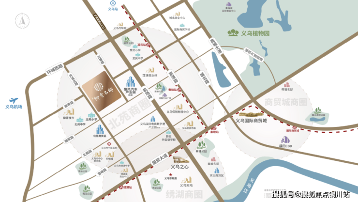 一条机场路畅达全城,约10分钟车程直达义乌之心、义乌天地等繁华中心,约15分钟车程直达国际商贸城及福田CBD,帷幄事业与生活的双重主场。