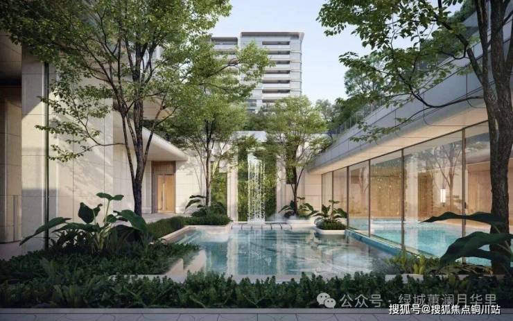 ②丰富的公区配置:下沉庭院、室内恒温泳池与嬉水池(两者通过可开合玻璃立面产生互动)、中轴水景花园会所、空中观景健身盒子。