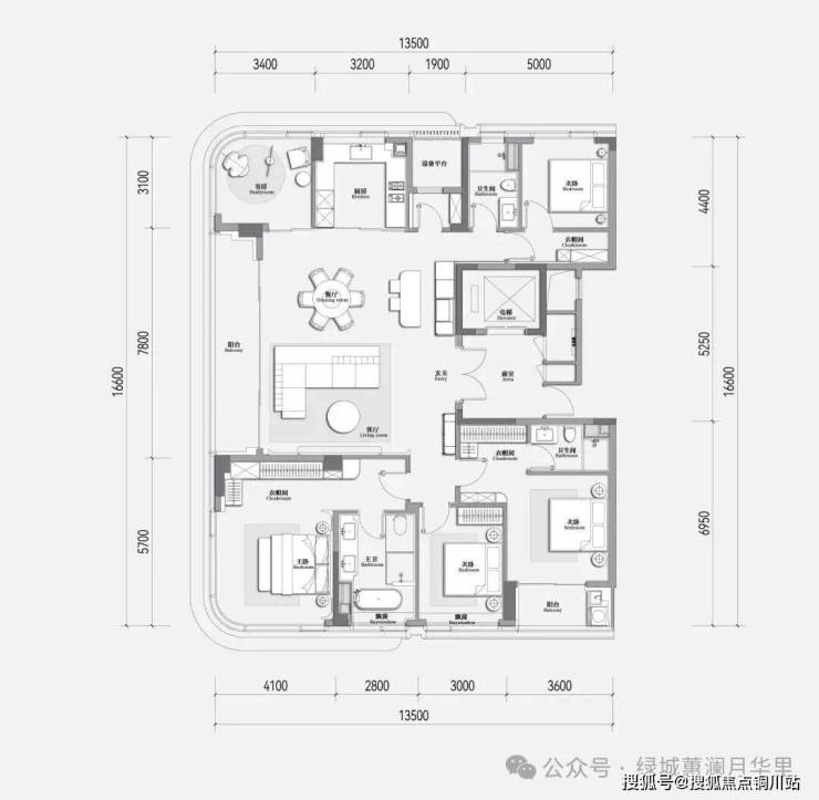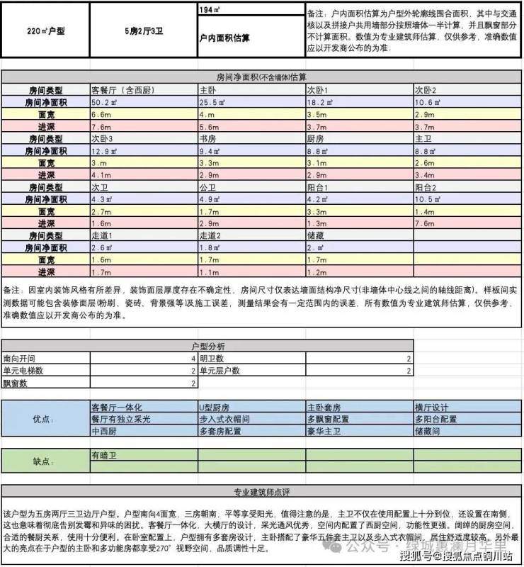 ③经过第三次打磨的经典户型,分别是建面约188-220-280方,惊喜的超高得房率。