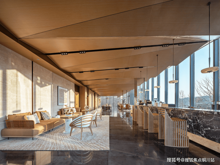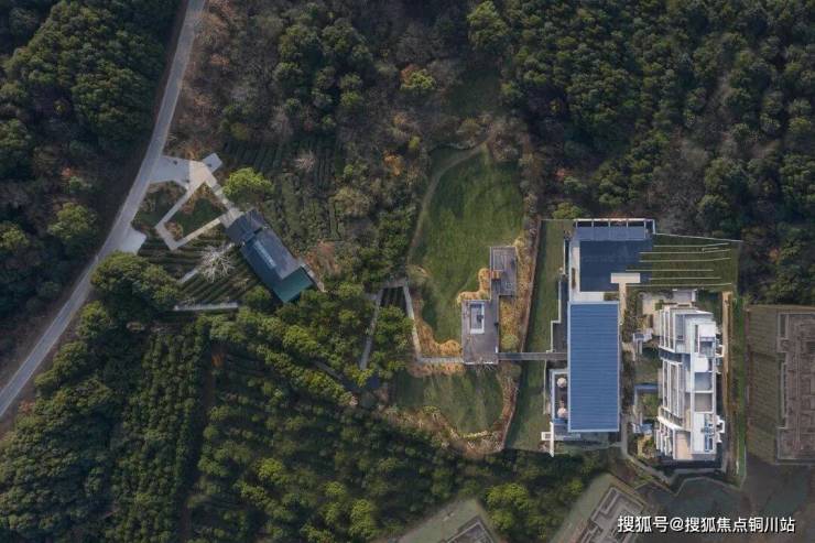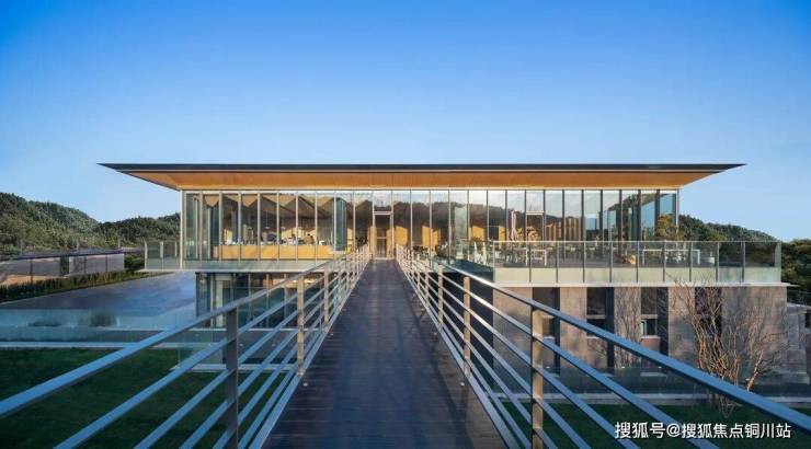 底层敦实的基座将建筑与山体融为一体,二层横向连续的玻璃幕墙面朝茶田徐徐展开,餐桌、吧台面对如此美景,假象一下:未来的社区,暮色四合,宵夜开席,岂不美哉?