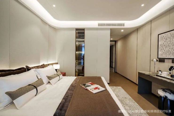 譬如,在『臻萃』海派样板间,客厅“芬迪白”转角奢石,坚持选择更高成本和难度的弧形工艺,只为呈现更优雅、生动的视觉观感;主卧定制Mini Bar ,供存放茶水、藏酒、小食等,还原酒店行政套房的奢居质感,甚至还贴心地将走入式衣帽间靠近床侧的柜体局部打通,便于取用衣物。