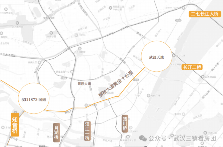 【超集核心丨武汉第一大道+汉口二环 城市主轴交汇极核】在素有武汉版“长安街”之称的解放大道与汉口二环“十字轴”上亦是湖北人的“顶流圈”,见证了武汉的发展与蝶变。东有二七滨江,西有宗关,形成“东富西贵”的格局。二七长江大桥、知音桥,分别是汉口二环的东西门户。城市主轴动脉交汇,接驳万象繁华,擎领百年汉口新繁华
